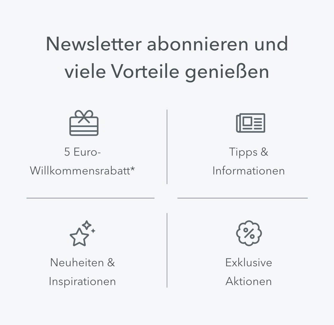 Newsletter abonnieren und über 5 Euro - Willkommensrabatt* freuen
